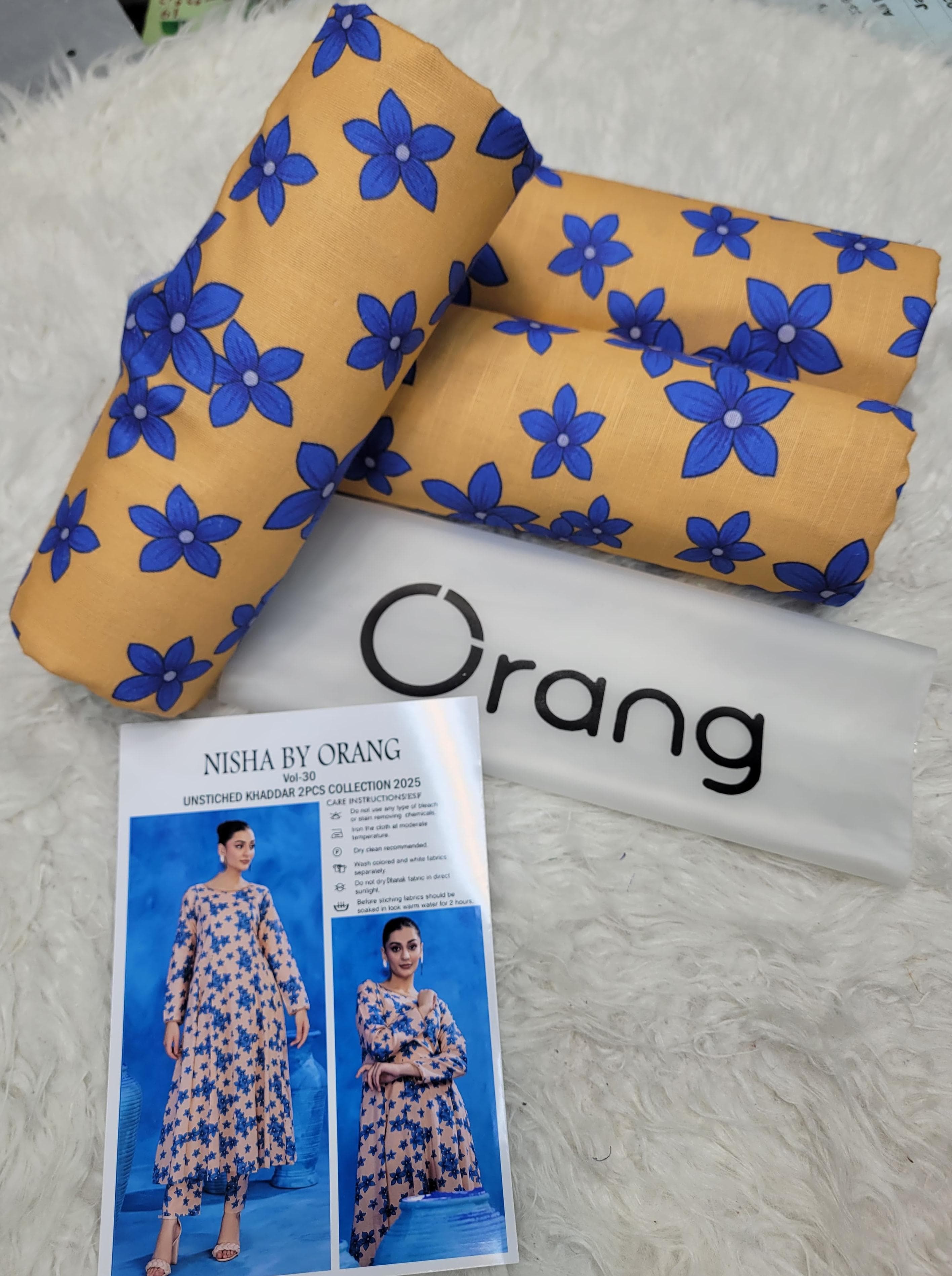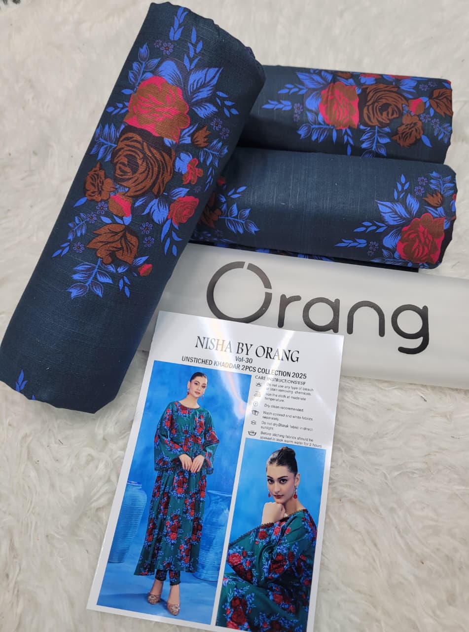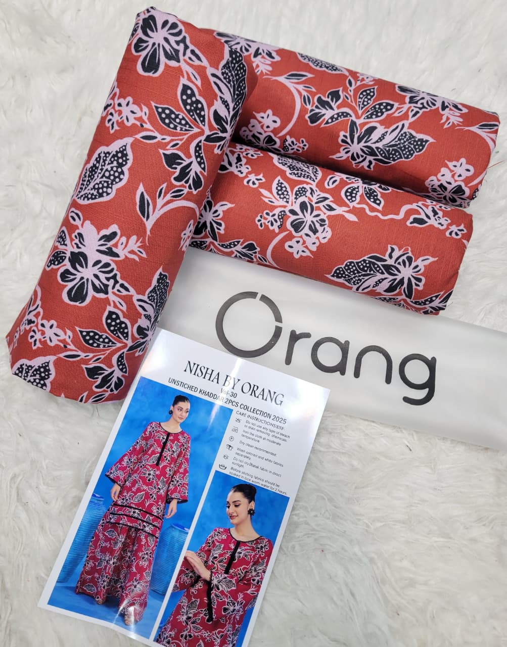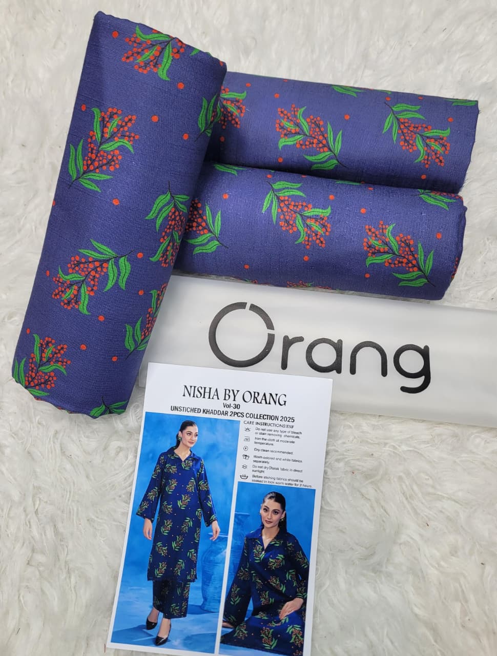 Vibrant Style with Guaranteed Quality! Introducing the vibrant Orang Khaddar collection, a perfect blend of comfort and style for your everyday wardrobe. This 2-piece set features premium Khaddar fabric with eye-catching prints and a 100% color guarantee!✨ Product Details & Selling Points Brand/Collection: Orang Fabric: Premium Khaddar (Ideal for casual, everyday, or moderate weather wear) Set Includes:Printed Shirt (Unstitched Fabric)Printed Trouser (Unstitched Fabric) Ease of Stitching: Generous $3.25$ Meter cutting provided, ensuring easy and proper stitching for various sizes. Quality Guarantee: Colour Fabric Guaranteed $100\%$ (No fading or bleeding worries).Presentation: Comes with Proper Bag Packing, making it ideal for gifting or neat storage